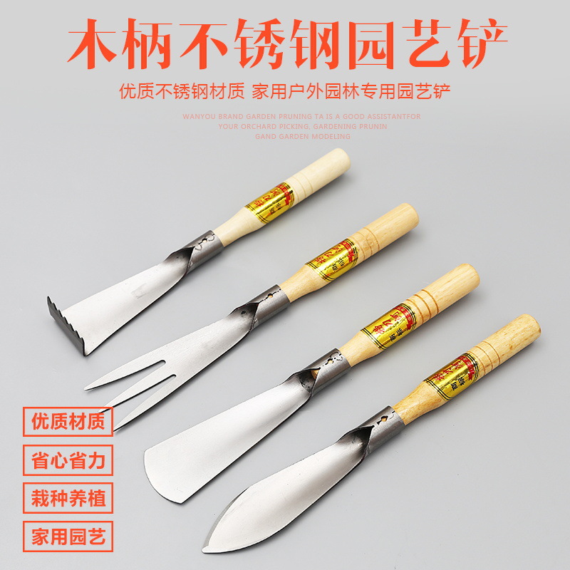 Alat tanam sayuran rumah tangga, sekop kecil Stainless steel taman, seni menggali sayuran liar, sekop kecil, alat tanam bunga bawang putih