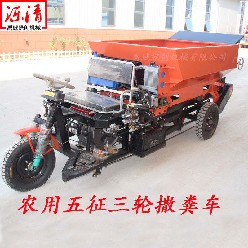 Multifungsi tiga roda penyebar pupuk pertanian rumah kaca Orchard organik pupuk basah dan kering penggunaan ganda peralatan pupuk otomatis penyebar pupuk