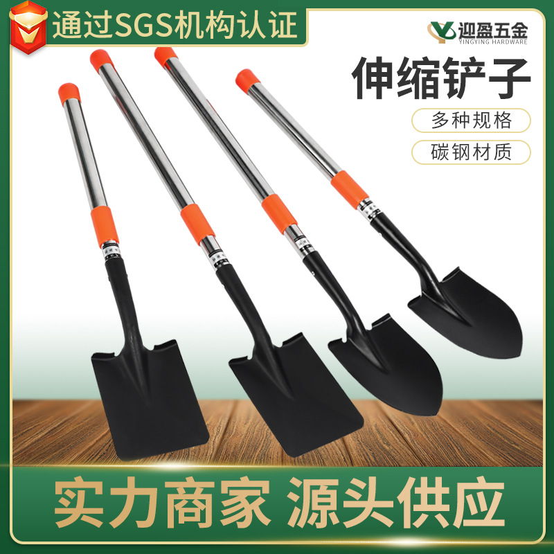 Alat tanam bunga sekop yang dapat ditarik, diperpanjang untuk memancing luar ruangan, tanah longgar menggali sayuran, sekop sayuran liar
