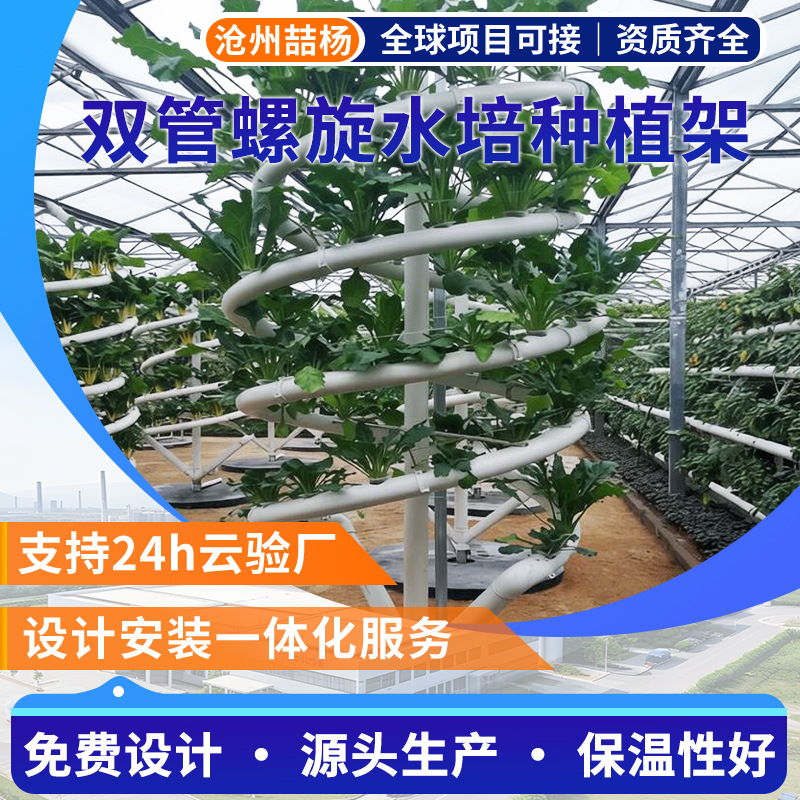 Rak tanam sayuran hidroponik, peralatan penanaman spiral tabung ganda untuk rumah kaca