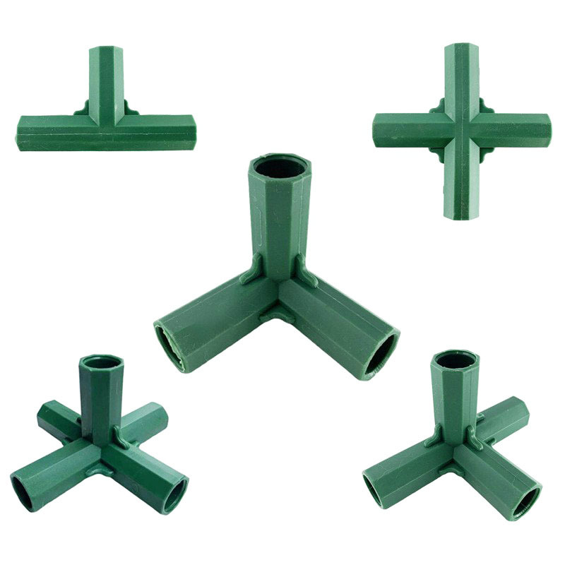 Aksesori pipa baja berlapis plastik, kaus konektor pilar berkebun braket lima arah konektor plastik rumah kaca