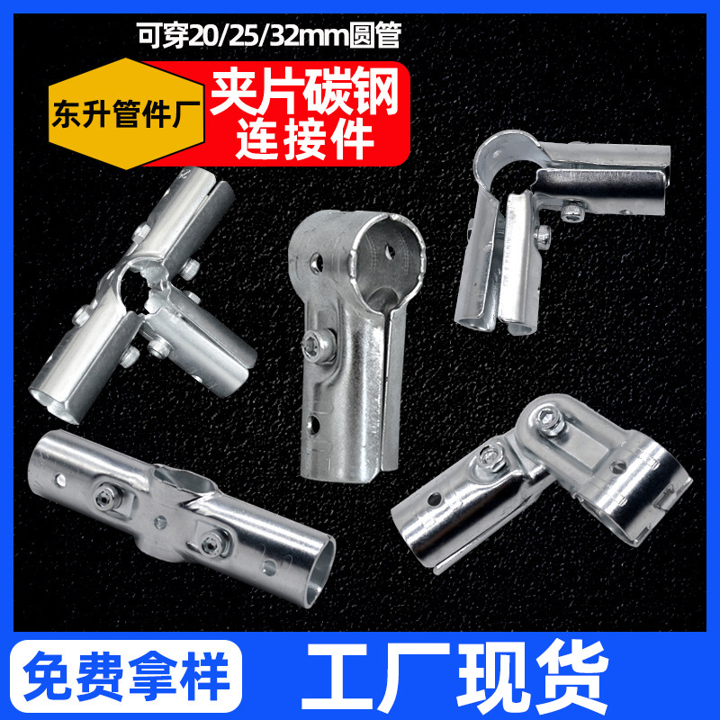 6 poin gantungan baju konektor pipa baja 25mm pipa bulat galvanis gesper tetap bebas las sekrup gesper aksesori instalasi