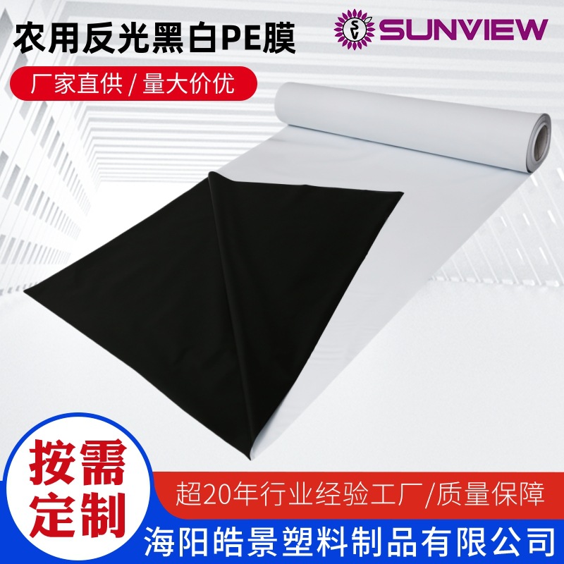 Lembaran plastik reflektif tebal, film plastik, film rumah kaca, film pertanian penghalang cahaya dan insulasi panas, film PE hitam putih reflektif untuk peneduh rumah kaca.
