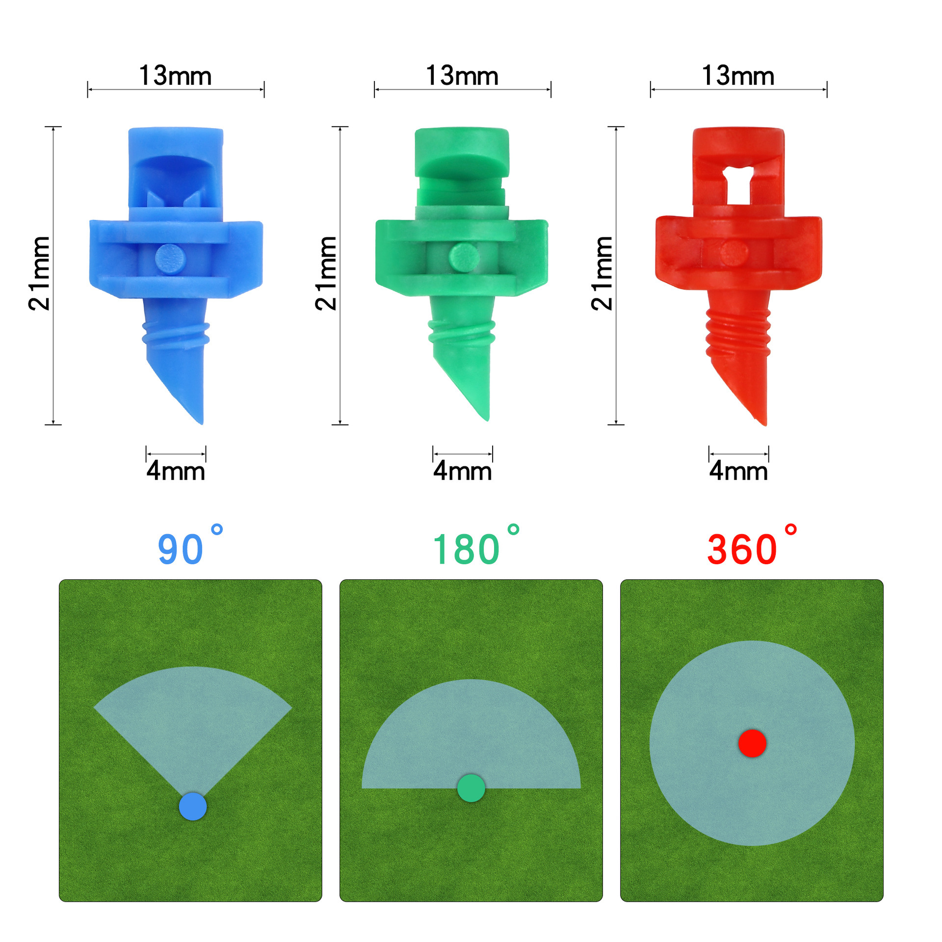 Refraksi atomisasi nosel mikro sederhana biru 90 hijau 180 merah 360 derajat pipa PE untuk rumah kaca irigasi pohon penyiraman