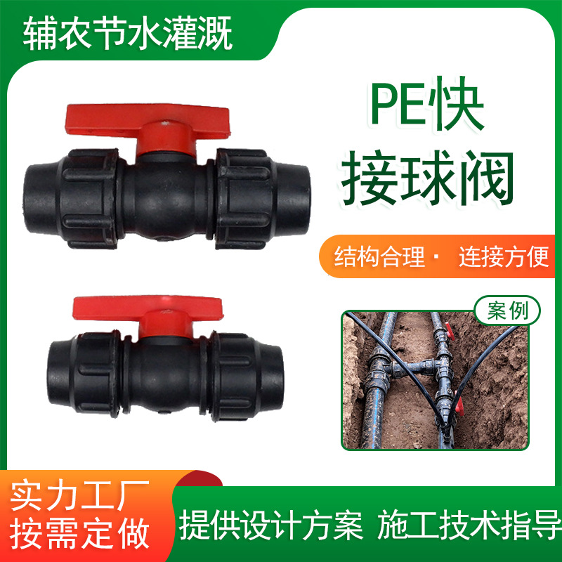 Katup bola PE, koneksi cepat rumah kaca, irigasi, pipa utama PE, aksesori saklar dapat disesuaikan, katup longgar