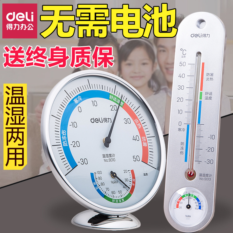 Deli 9013 higrometer dalam ruangan dan luar ruangan termometer rumah tangga farmasi dipasang di dinding suhu kamar bayi presisi Dinding