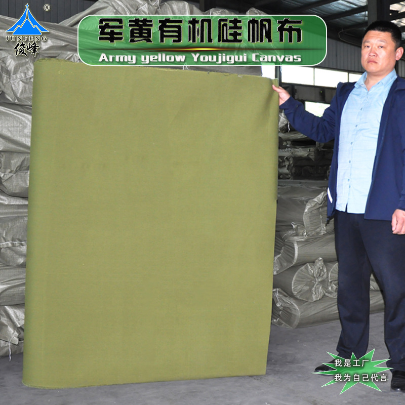 Jihuang Kain Kanvas Tahan Air Ekstra Tebal Tahan Aus Tentara Kuning Bahan Silikon Organik Organik Kain Poliester Kain Tenda Pabrik
