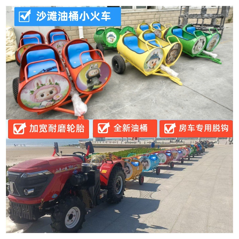 Gabon dua baris barel minyak pantai kereta api kecil dengan tenda