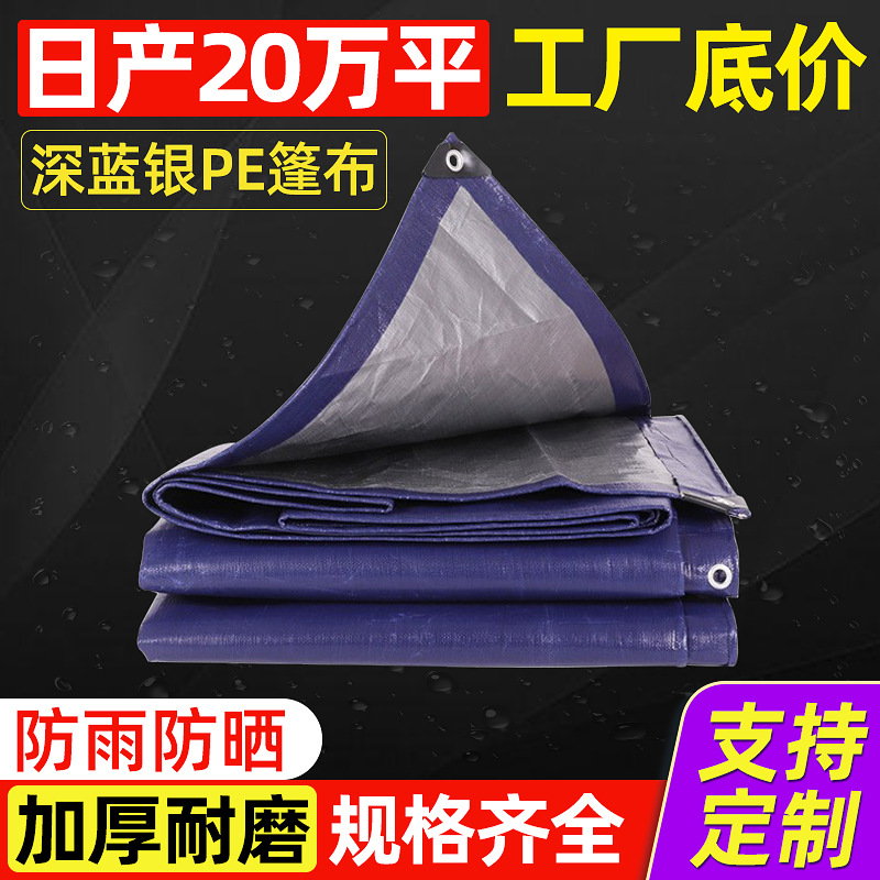 Terpal pelindung matahari warna biru tua perak untuk truk, penggunaan ganda untuk keperluan industri dan pertanian, pelindung sinar matahari, pelindung hujan lebat, tahan hujan.