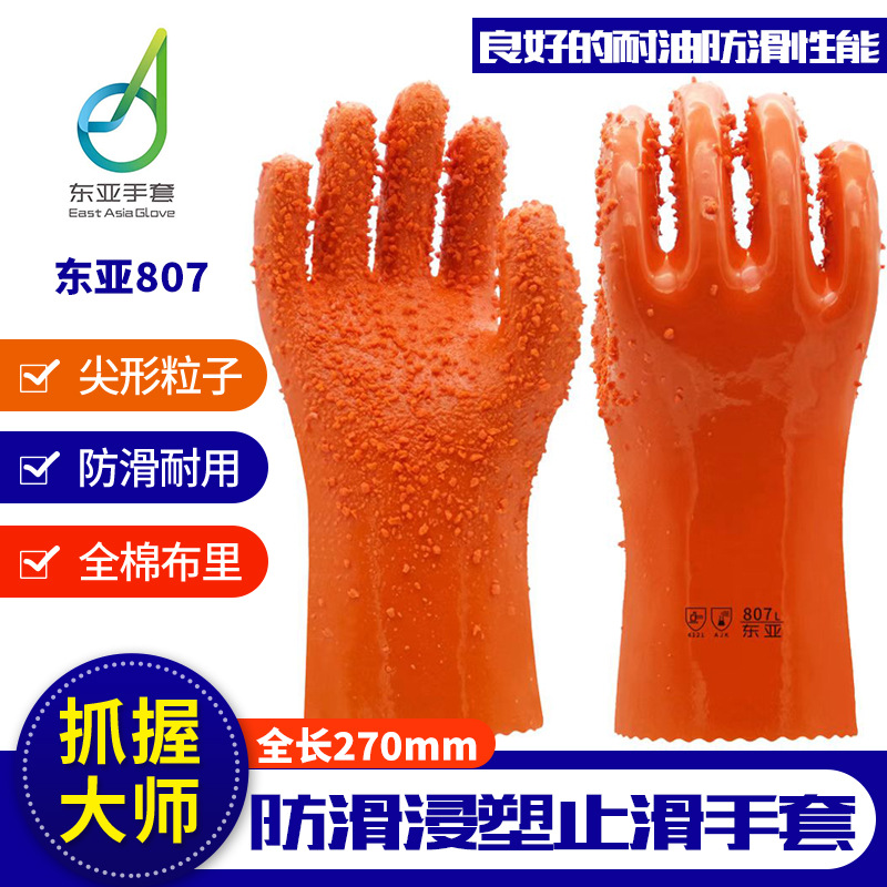 East Asia sarung tangan 807 sarung tangan, sarung tangan pelindung kerja PVC mekanis tahan aus antiselip tahan minyak asam dan alkali untuk produk perikanan dan Akuatik