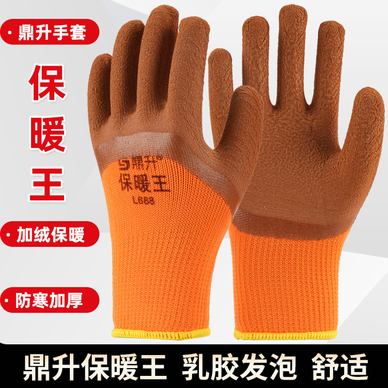 Sarung tangan pelindung Tenaga Kerja Wang hangat bulu domba busa PVC tahan dingin hangat Terry bulu mata berjajar tahan air tahan minyak bekerja Musim Dingin