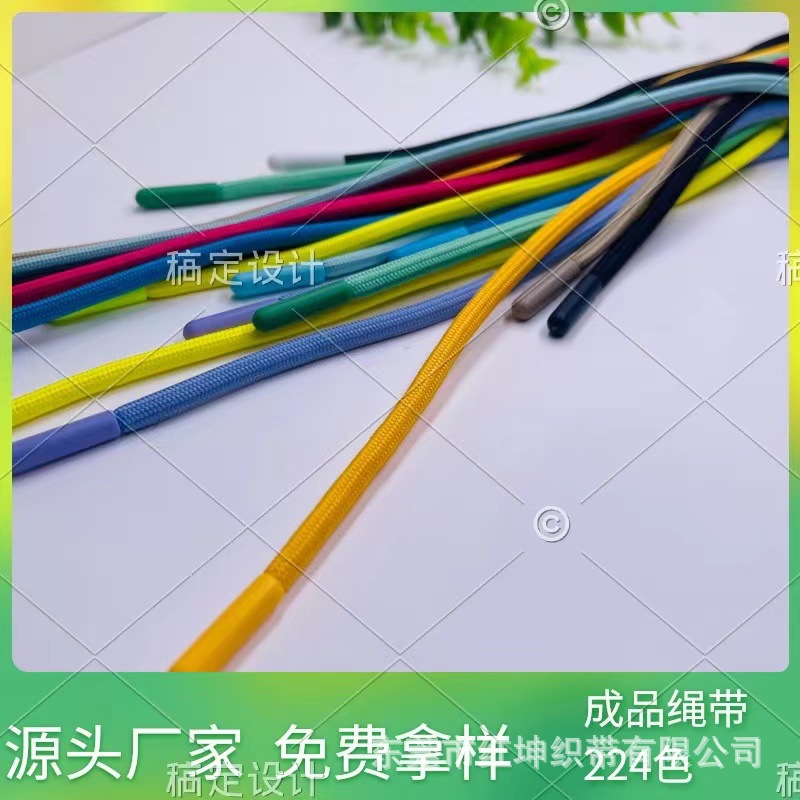 Dalam stok grosir tali berwarna inti poliester tali bulat dengan selesai karet kepala bagasi pakaian celana tali topi tali 32 ingots