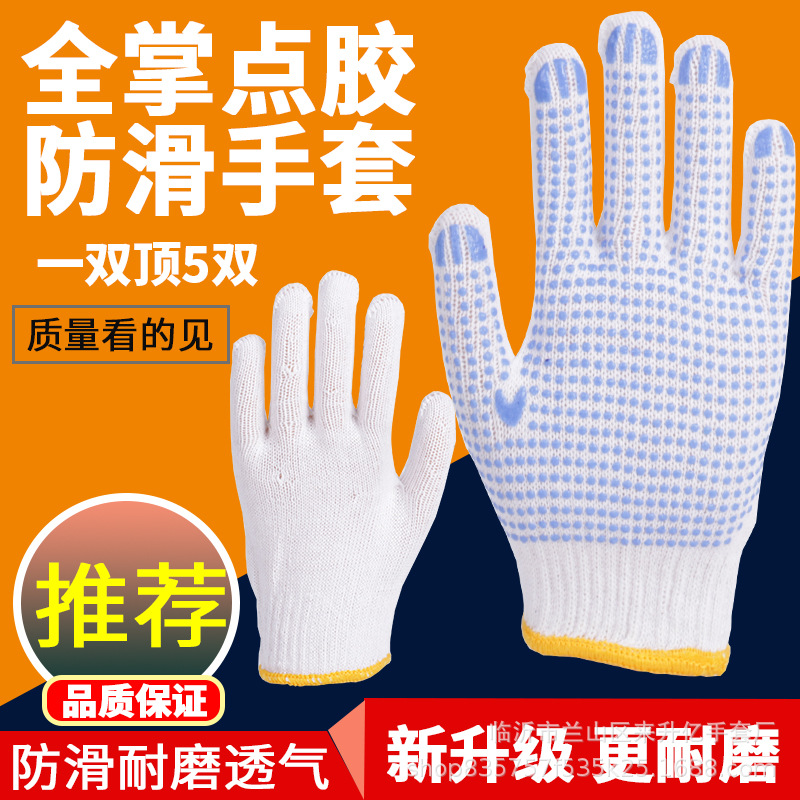 Sarung tangan pelindung kerja pabrik grosir sarung tangan plastik titik benang katun nilon non-slip sarung tangan mengeluarkan titik penanganan situs sarung tangan manik