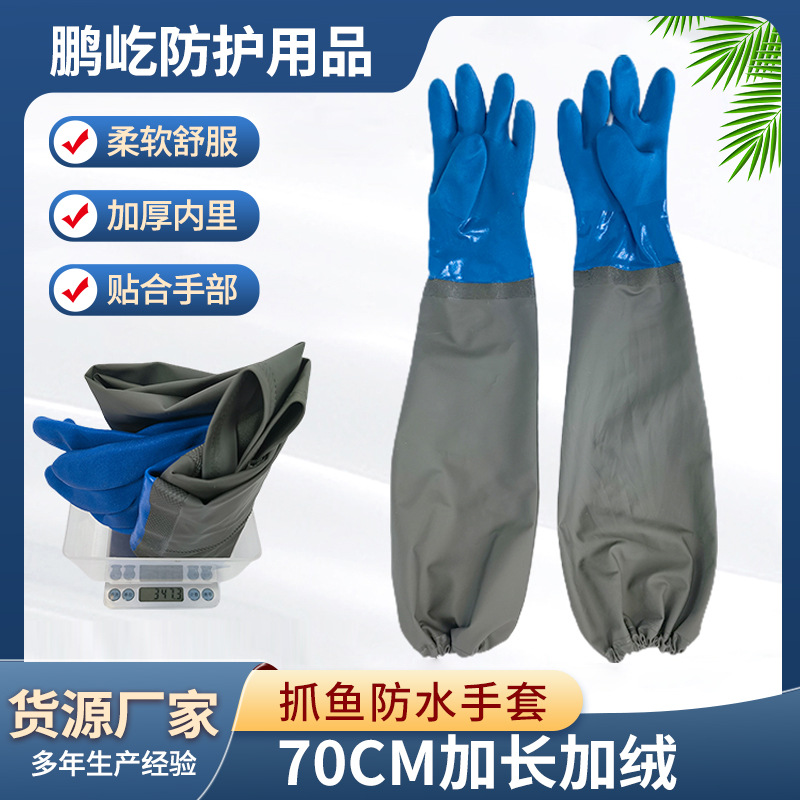 Sarung tangan memancing, pemanjang dipertebal tahan air tahan lama lengan memancing sarung tangan karet non-slip