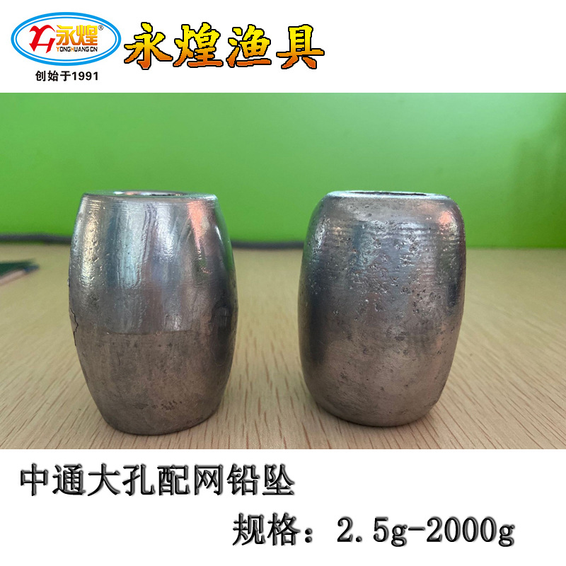 Yonghuang dengan liontin jaring 2.5 g-2000 g berbagai spesifikasi Zhongtong liontin timah lubang besar Aksesori perlengkapan memancing liontin counterweight jaring pancing