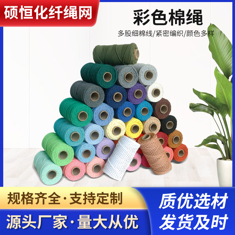Tali katun warna-warni 3mm 4mm tali pengikat tiga untai diy tali kepang permadani buatan tangan tali tag pabrik tali katun grosir