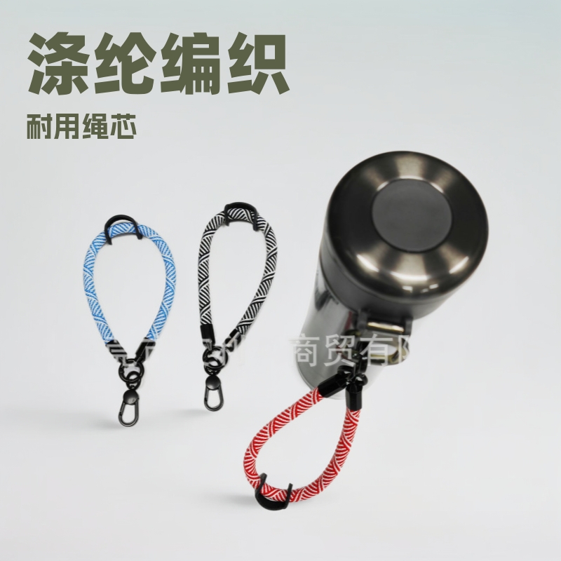 Tali kepang poliester 8MM langsung dari pabrik, tali selempang lanyard ponsel multifungsi tali pengaman pergelangan tangan