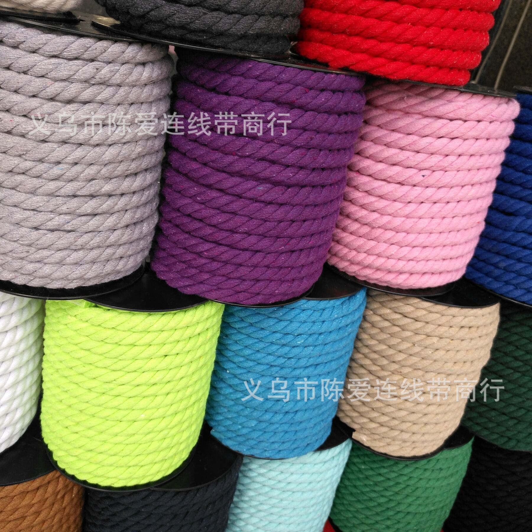 Tali katun tebal buatan tangan 8mm tali katun warna-warni tiga untai tali putar taman kanak-kanak DIY tali desain dekoratif lembut