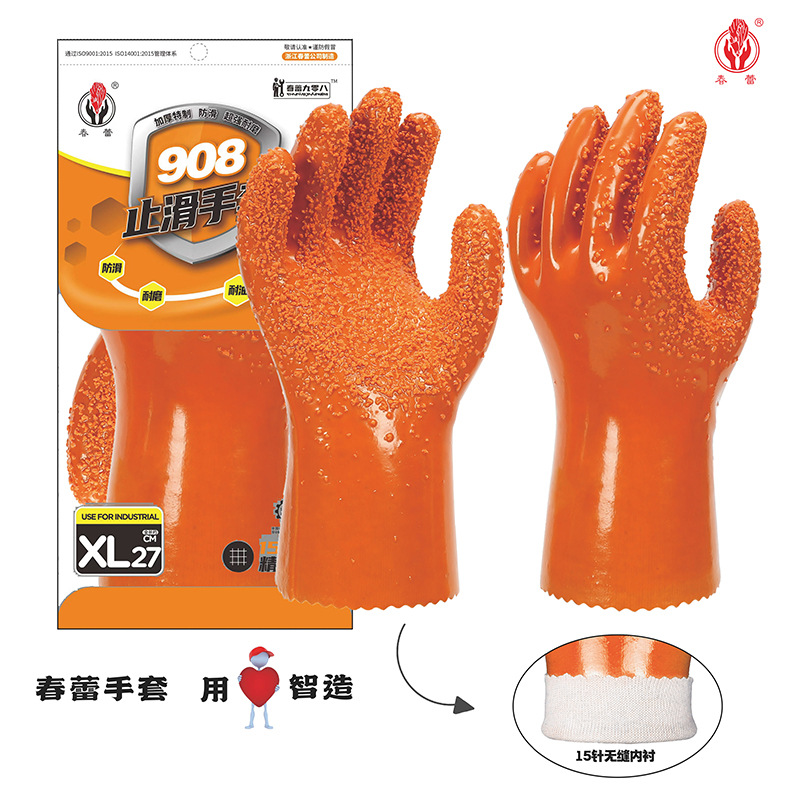 Chunlei 908 sarung tangan antiselip asam pelindung berlapis bulu dan sarung tangan anti selip mesin lapisan elektro Kimia Industri tahan alkali