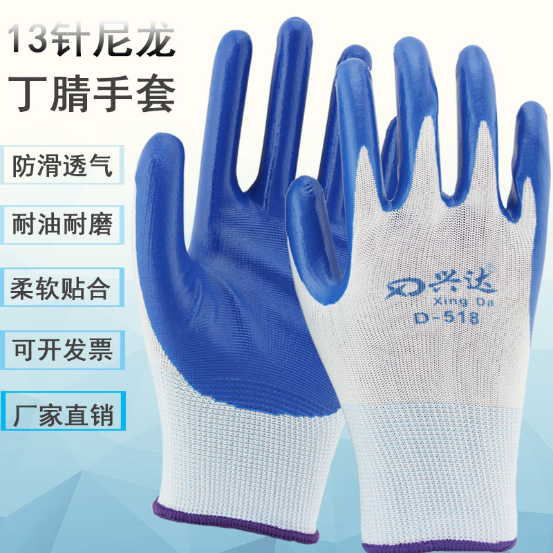 Sarung tangan pelindung tenaga kerja 13-pin nilon nitril gantung lem antiselip sarung tangan tahan aus Ding Qing dipping poles sarung tangan perbaikan mekanik