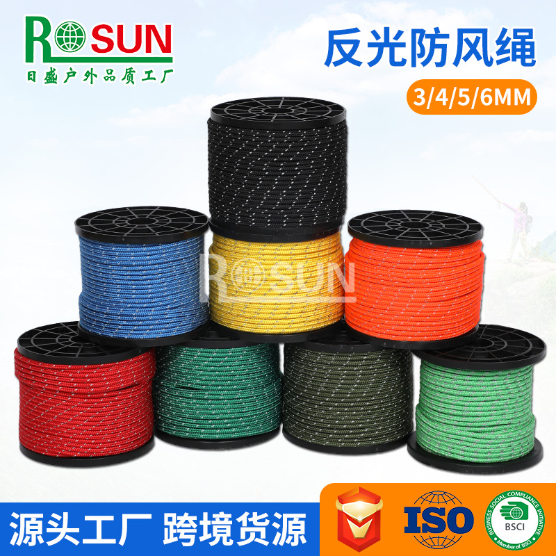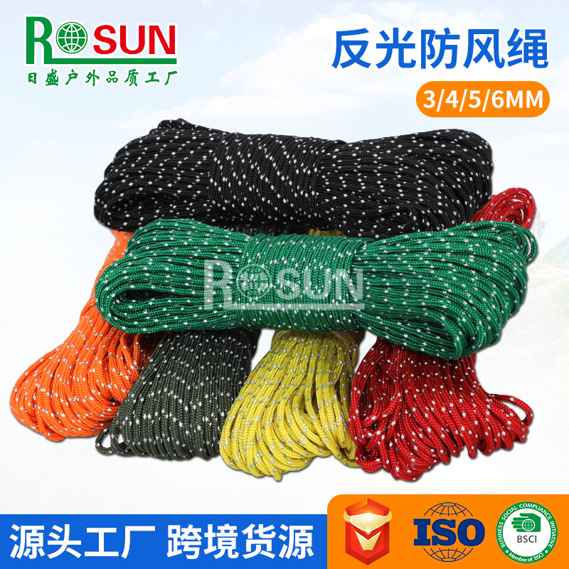 Luar ruangan diskon besar 5MM sorot reflektif tenda angin tali kanopi serut luar ruangan berkemah multi-fungsi tali pengikat
