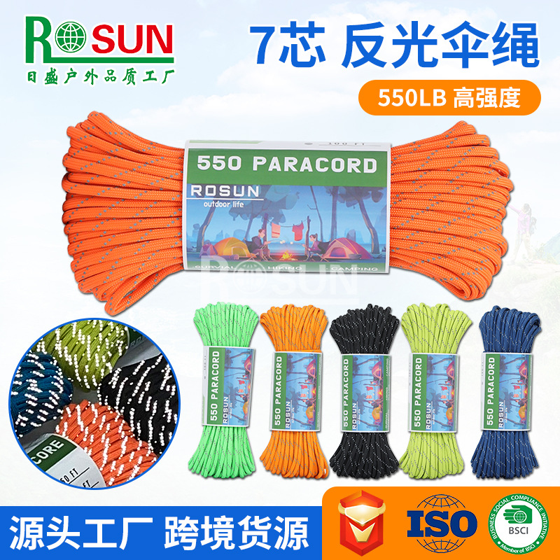 Tali payung reflektif tujuh inti, 550 tali payung reflektif, tipe 550, anyaman luar ruangan, tali payung,