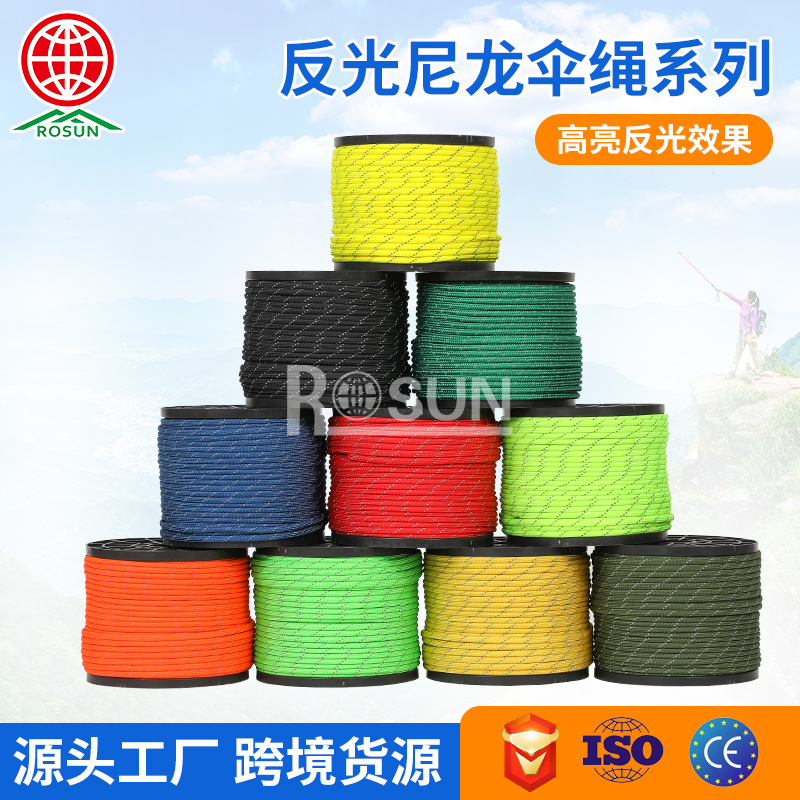 Luar ruangan penjualan terlaris 4MM * 50 m tujuh inti reflektif tali payung nilon sorot reflektif tali payung Kemah tali tenda