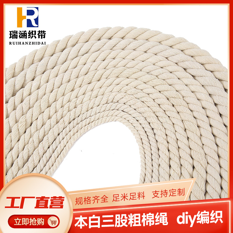 Tali katun tiga untai putih tali tebal tali katun tali putar permadani buatan tangan diy tenun krem tali putar grosir