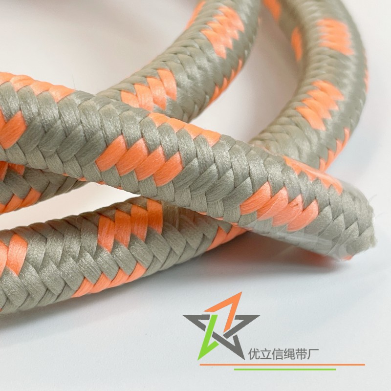 Tali bulat inti poliester abu-abu oranye 1cm, tali bagasi portabel diameter 1cm, tali titik lompat oranye terang