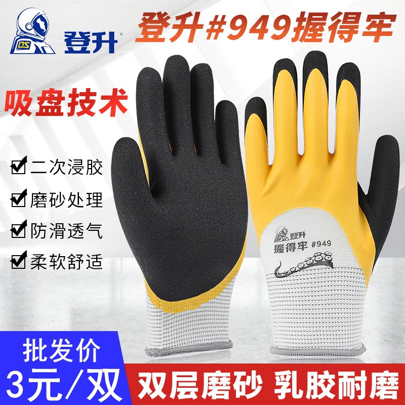 Dengsheng sarung tangan 949, tahan aus dengan kuat antiselip tahan air memancing dapat bernafas lapisan ganda lem celup buram pelindung tenaga kerja