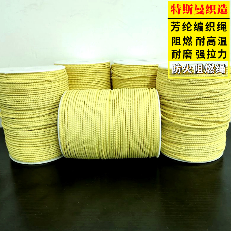 Tali aramid tahan api, tali kepang Kevlar, tali bulat tahan suhu tinggi, tali serat Kevlar, tali interlayer, tali tahan api berkekuatan tinggi.