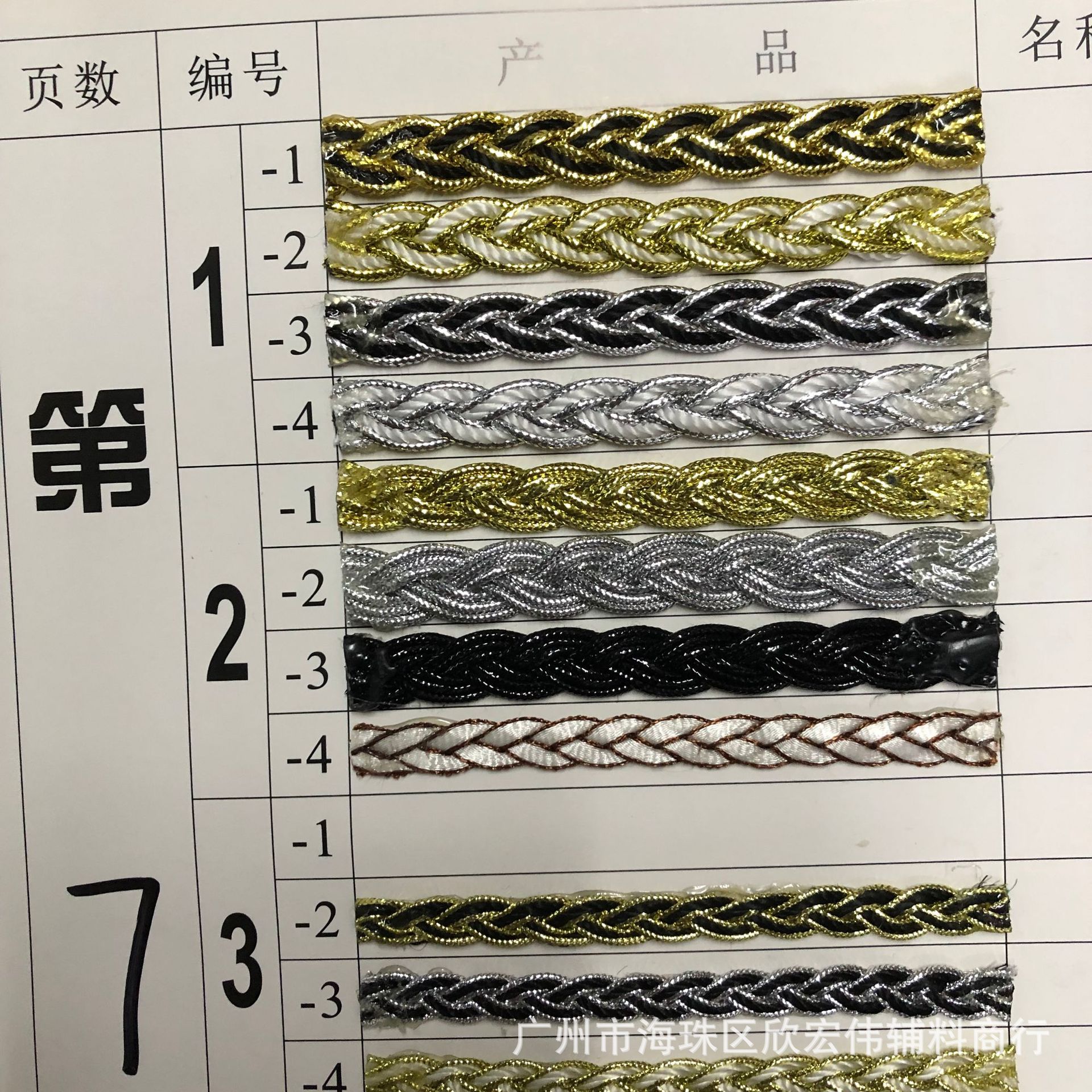 Tali kepang tiga untai 0.5-1.2cm warna hitam dan putih emas dan bawang perak tali putar tiga untai sabuk perut ular warna campur tali kepang