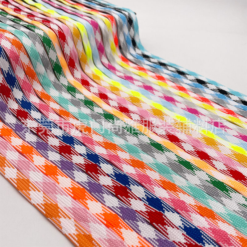 Tali sepatu sutra poliester 1cm lebar kotak-kotak berongga tali sepatu dan topi tas gantung tali putih latar belakang tali bunga tali datar grosir
