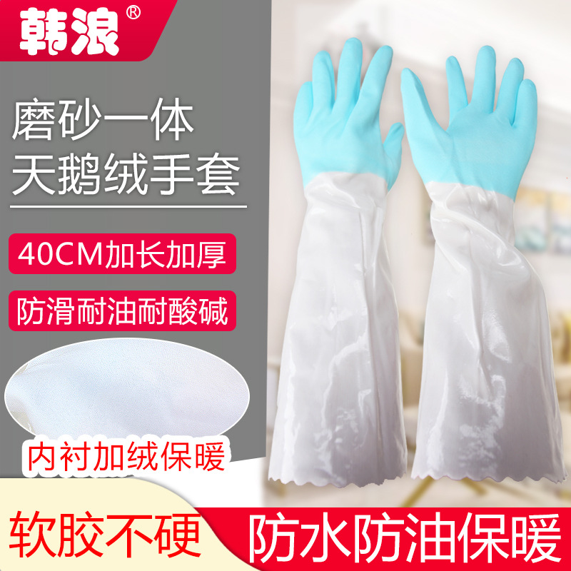 Hanlang sarung tangan rumah tangga, 88-40 bulu berjajar musim dingin pelindung dapur wanita karet pembersih tahan minyak memancing dipertebal tahan air