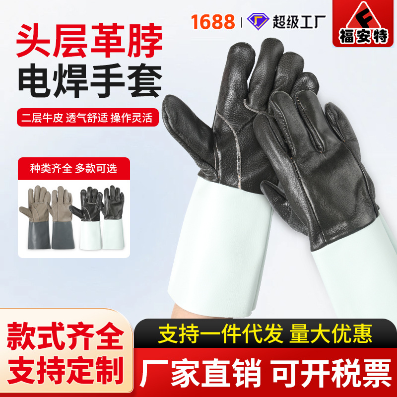 Sarung tangan las kulit sapi panjang pabrik grosir fuant dua lapis kulit leher terisolasi sarung tangan las panjang