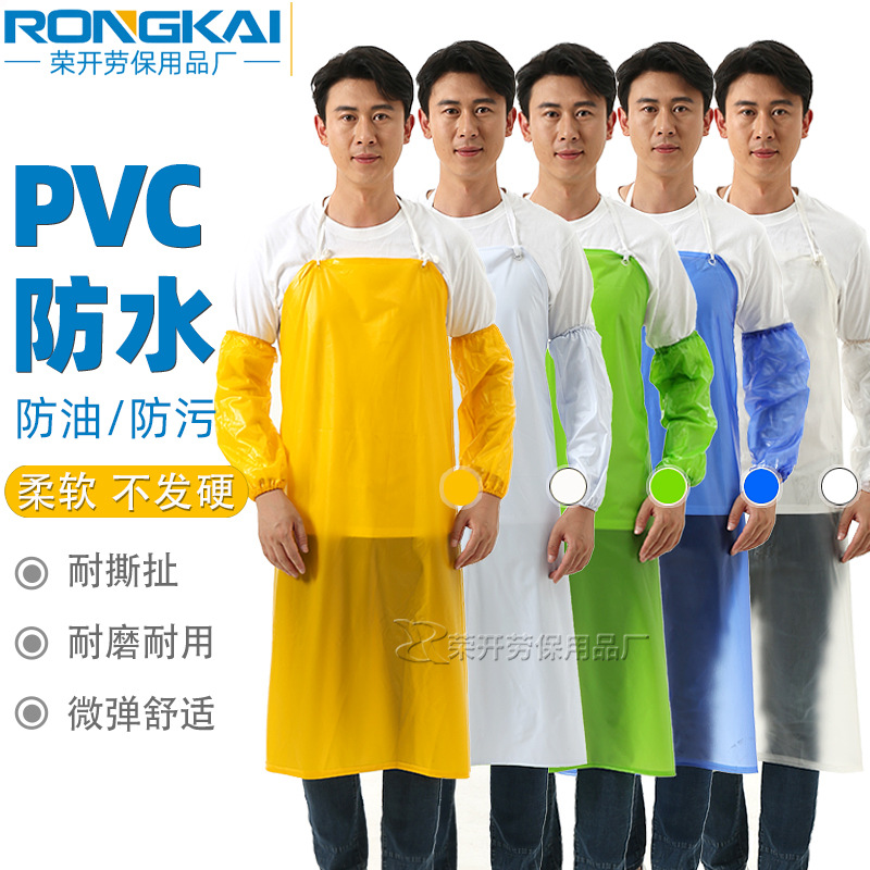 Celemek PVC tahan minyak tahan air kulit lunak bib dapur makanan akuatik asam lemah dan lengan tendon sapi tahan alkali