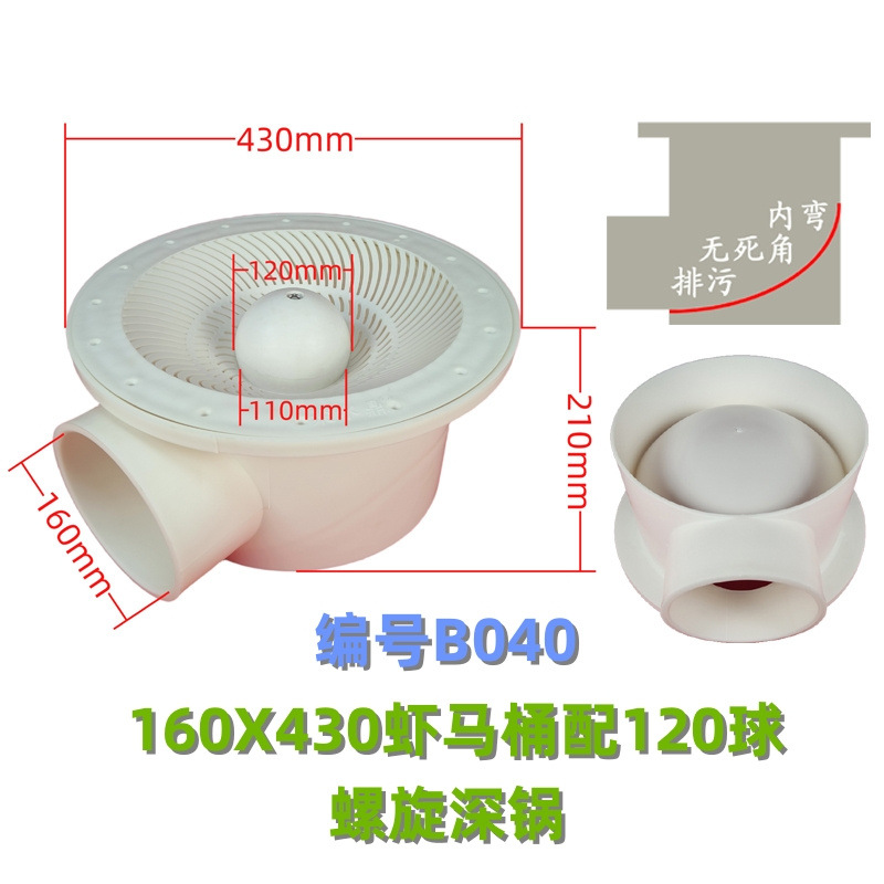 B040 udang toilet baris udang kerang gantung bola toilet udang kolam limbah outlet kolam pembiakan lantai pengeringan ikan kolam filter ember