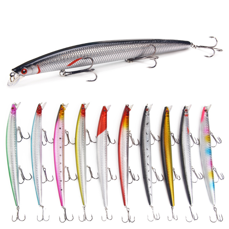 Luya umpan pancing laut, perlengkapan memancing laut Mino panjang plastik ABS lintas batas 10 warna 18cm23g + tiga kait diperkuat