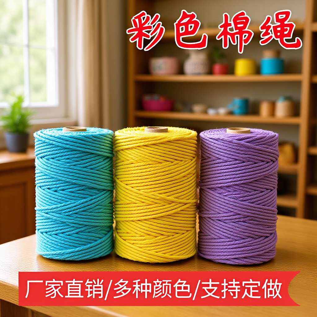 Tali pengikat benang katun tali kepang benang katun buatan tangan tali dekorasi DIY tali kepang permadani tali katun warna-warni grosir