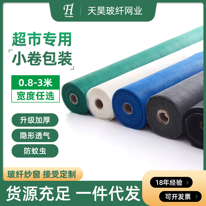 Grosir jaring layar fiber kaca rumah tangga, jaring layar anti nyamuk anti-maling rol kecil serat kaca tidak terlihat jaring layar jendela anyaman datar