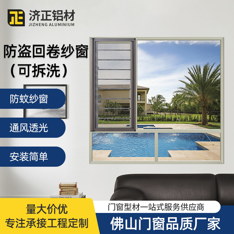 Bingkai tengah tunggal yang dapat dilepas dan dicuci bingkai berlian layar jendela rusak jembatan aluminium Aloi anti-nyamuk antimaling jendela rusak jembatan jendela geser aluminium