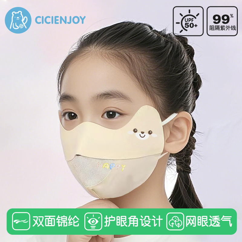 Masker Pelindung Terik Matahari Anak-anak Musim Panas Model Tipis Anti UV Jaring Sutra Es Bersirkulasi Kartun Lucu Anak Perempuan dan Anak Perempuan