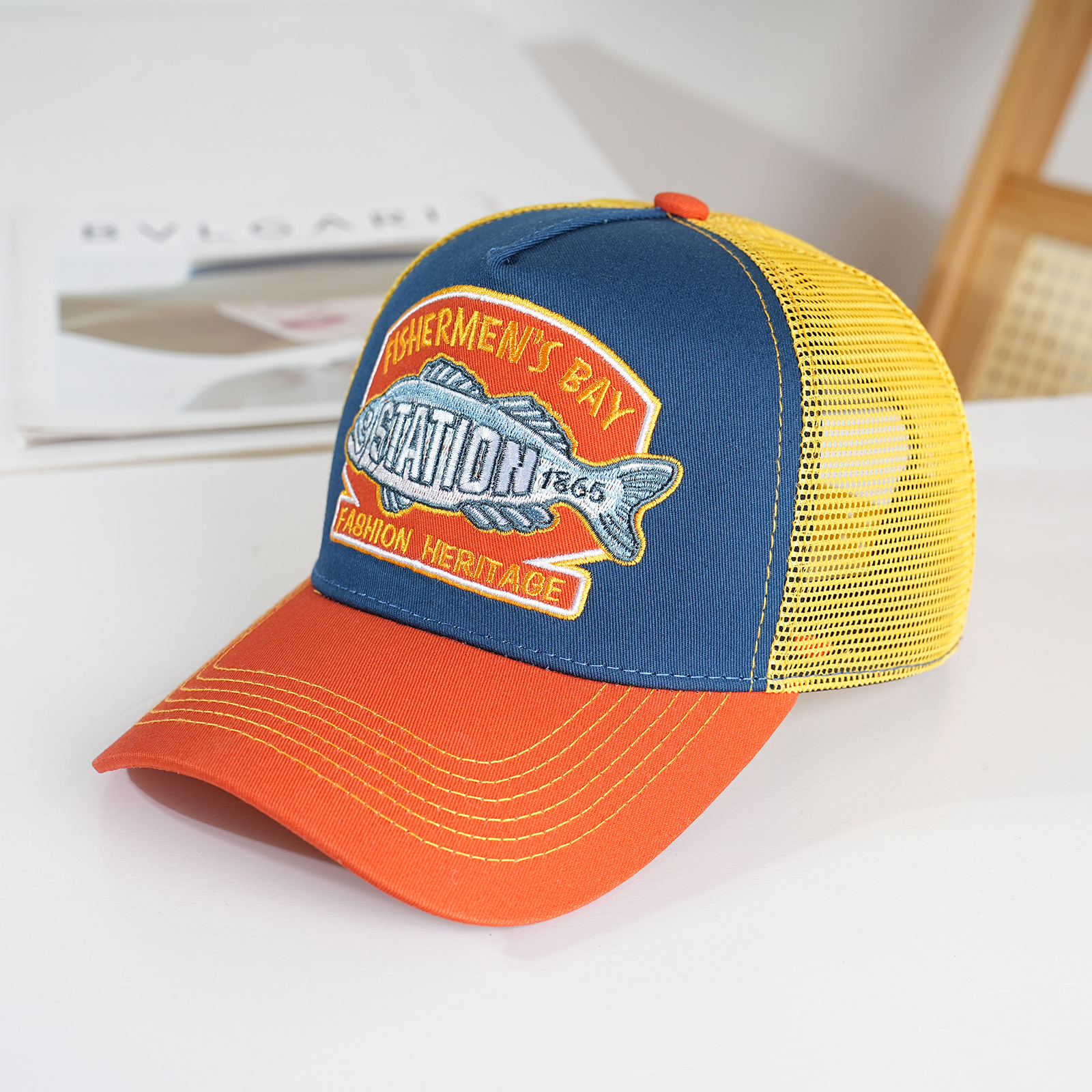 Topi Lintas Batas 5 Lembar Topi Bisbol Bordir Katun Murni Topi Lidah Bebek Musim Panas Warna Kombinasi Pelindung Matahari Memancing Topi Setengah Jaring