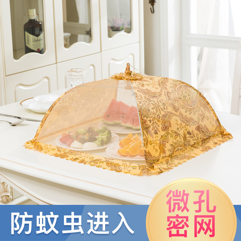 Penutup meja makan kain kasa sayuran, penutup makanan tahan debu tahan serangga anti-lalat berbentuk payung dapat ditarik