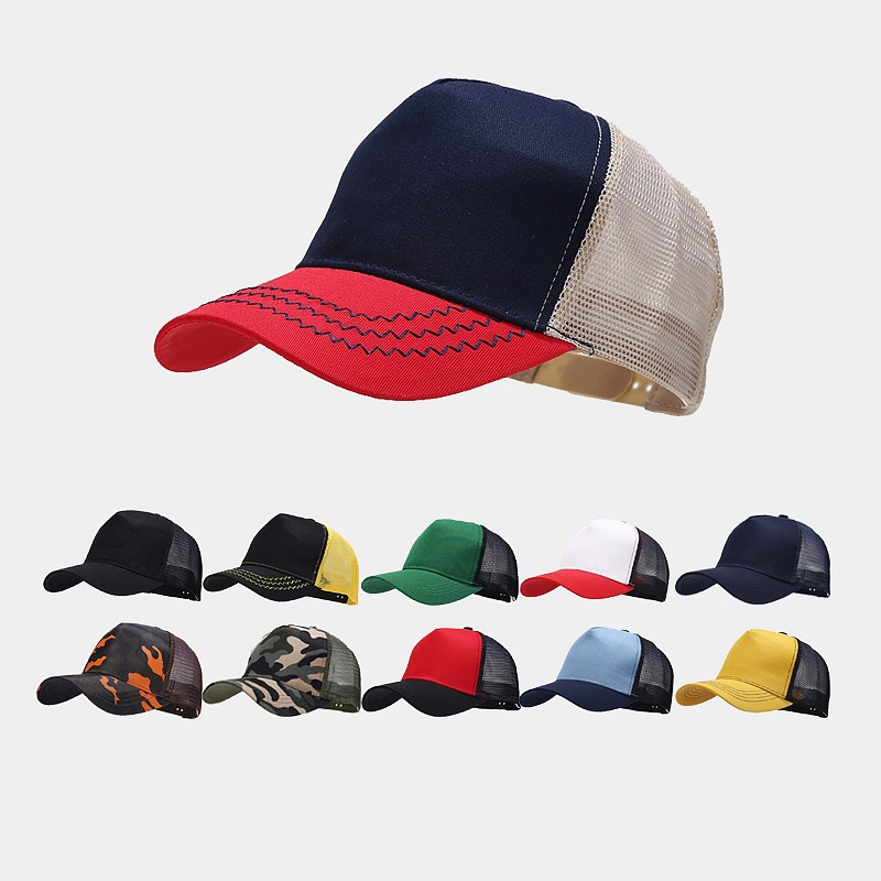 Topi bisbol jahitan panel cahaya kustom pria dan wanita, topi jala runcing bernapas jala luar ruangan, topi populer untuk pria dan wanita