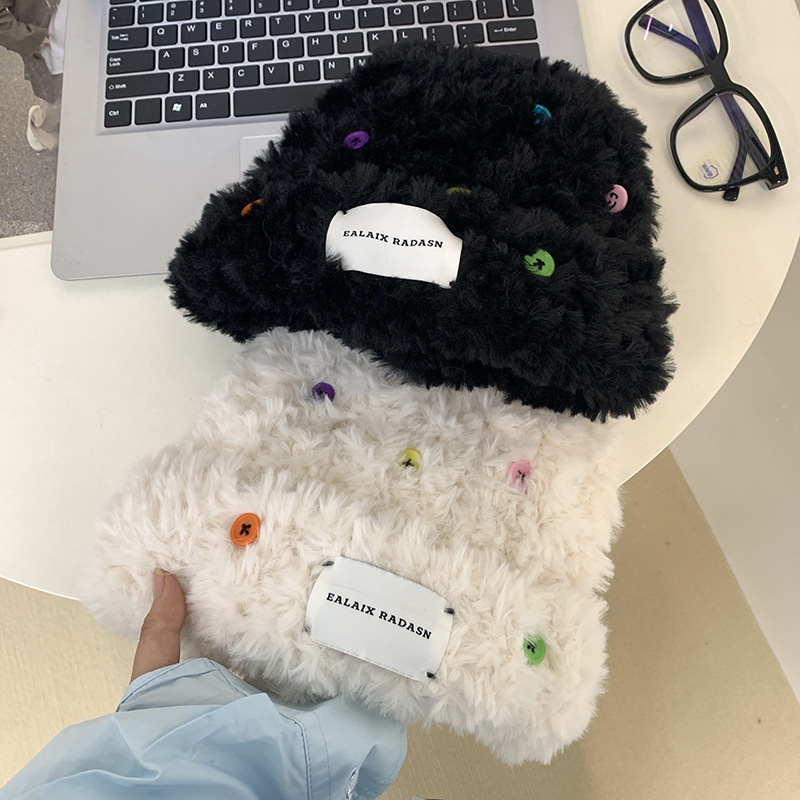 Topi kancing gaya sama rusa putih topi lembut musim gugur dan musim dingin wanita topi nelayan hangat topi dingin lingkar kepala besar topi wol topi baskom