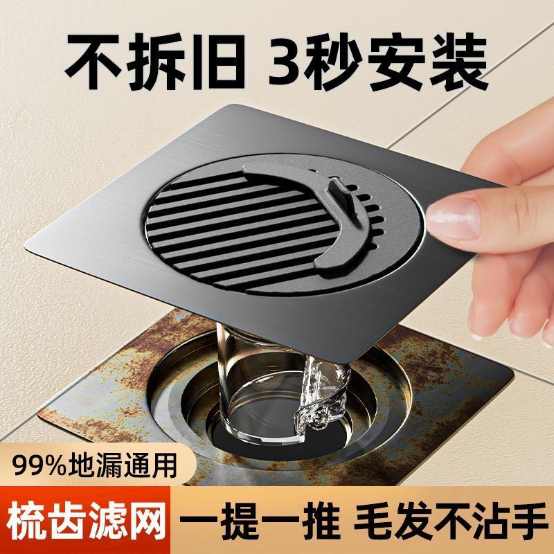 Kamar mandi rambut sampah saluran pembuangan pembuangan lantai baja tahan karat layar filter serangga anti-memblokir penutup artefak steker