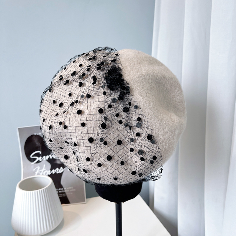 Topi pelukis rajut polka dot wanita baret wol baru musim gugur dan musim dingin CA4 gaya bagus topi pramugari