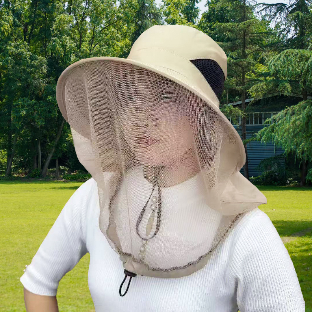 Topi Anti Nyamuk Topi Memancing Luar Ruangan Topi Pelindung Terik Matahari Topi Jaring Bernapas Penutup Topeng dengan Selendang Pinggiran Topi Besar Bernapas Dapat Disesuaikan