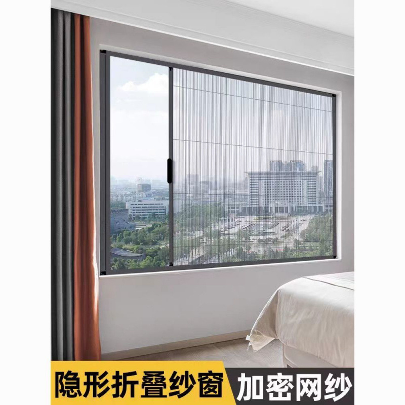 Pintu Layar Lipat Tanpa Rel Pakaian Sendiri Bebas Lubang Paduan Aluminium Tidak Terlihat Tarik Teleskopik Jendela Sarung Anti Nyamuk Pintu Jaring Pasir Rumah Tangga
